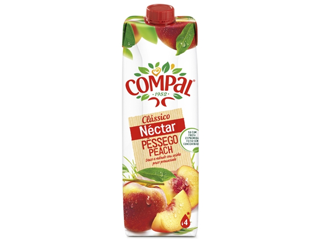 Embalagem cartonada Néctar de Pêssego COMPAL Clássico