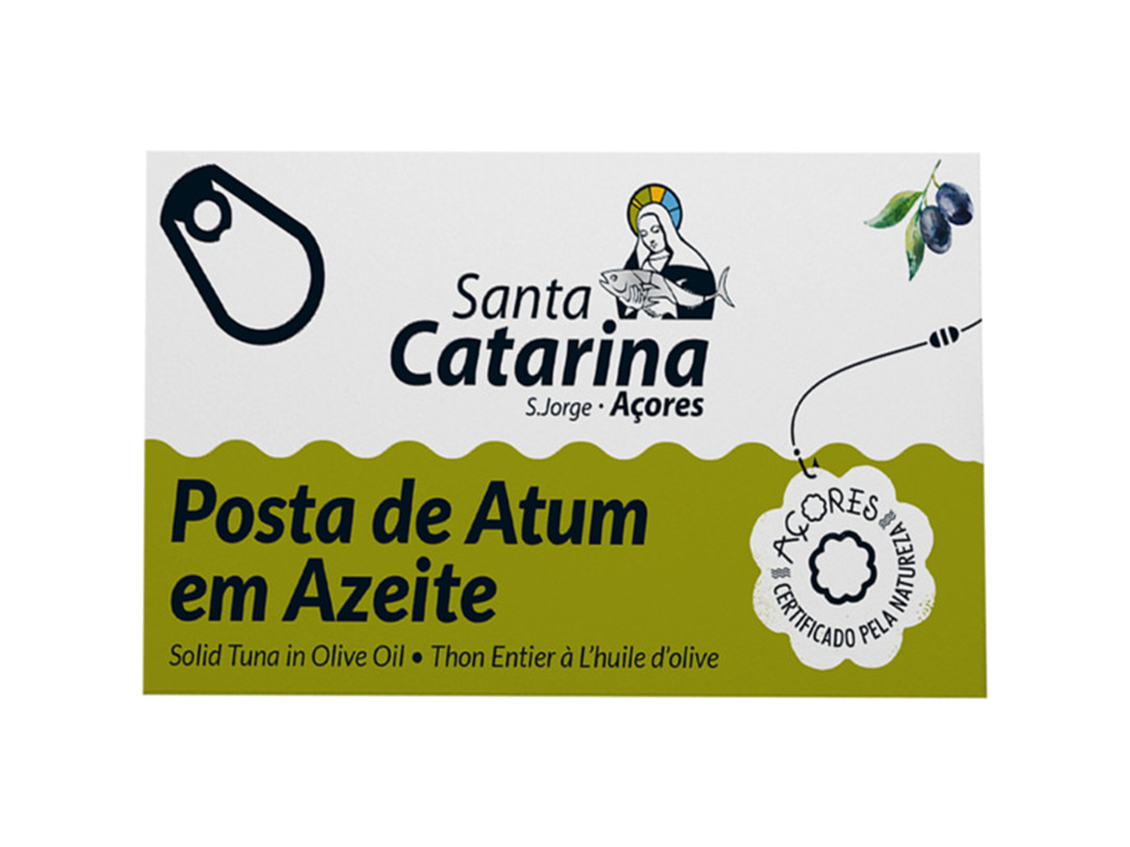 Lata de posta de atum em azeite Santa Catarina Açores com selo certificado